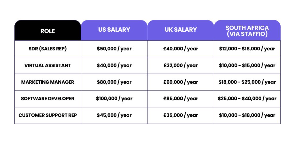 At Staffio, we connect businesses worldwide with skilled South African talent at a fraction of the cost of local hires. With the rising demand for remote professionals, we help companies tap into a highly educated, experienced, and English-speaking workforce—without the complications of high salaries, benefits, and HR overhead.